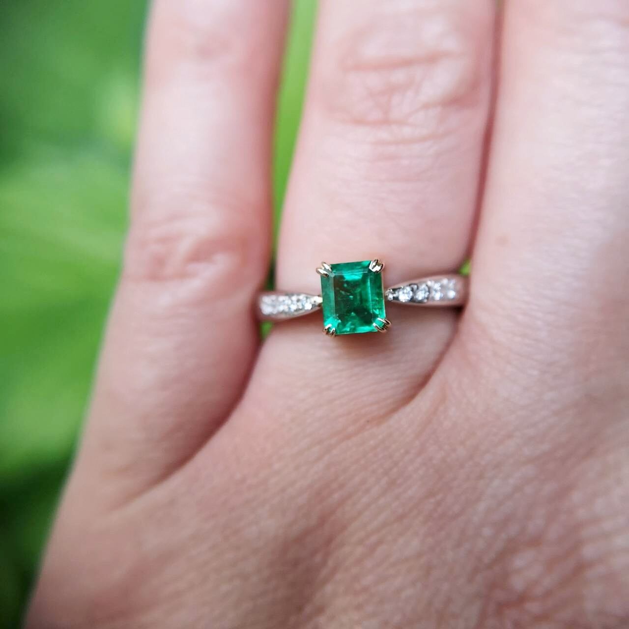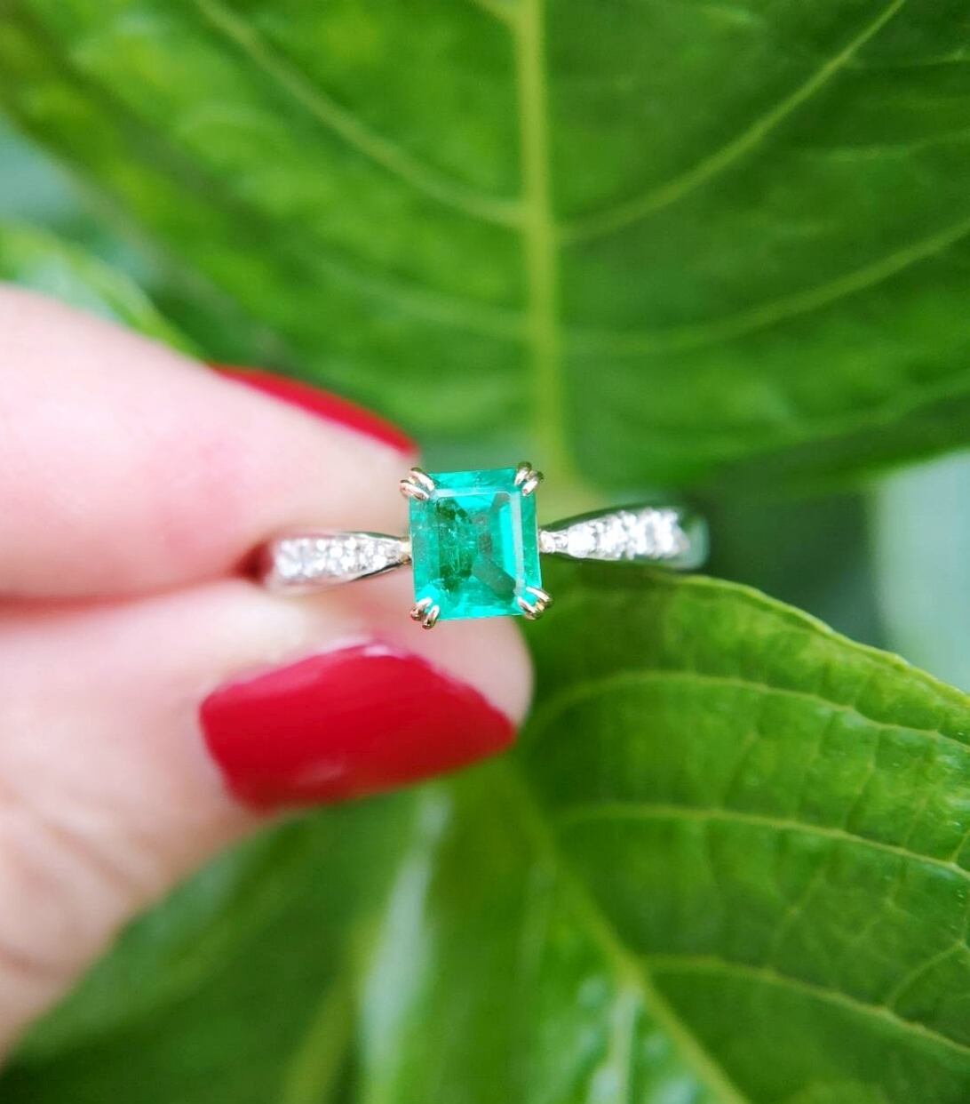 エメラルドを留める爪と台の部分のみ、あえてゴールドでお仕立てした、非常に手の込んだリングです。