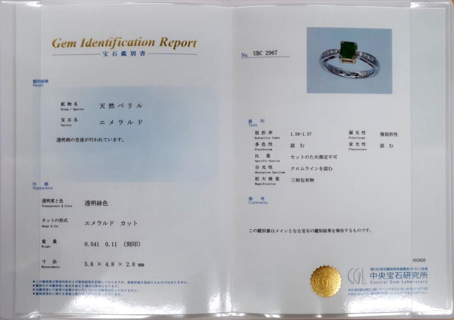 Pt900/K18 エメラルド&ダイヤモンドリングです。