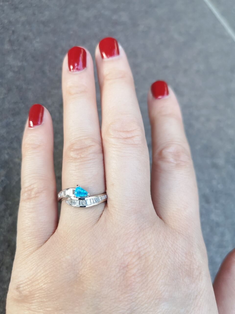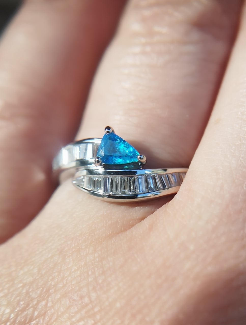 エレキトリックブルーのコントラストが強いバターリア鉱山特有のブルーアイズのような色に引き込まれてしまいそうなペアシェイプカットのスタイルが良く色味の強い力があるお石です。