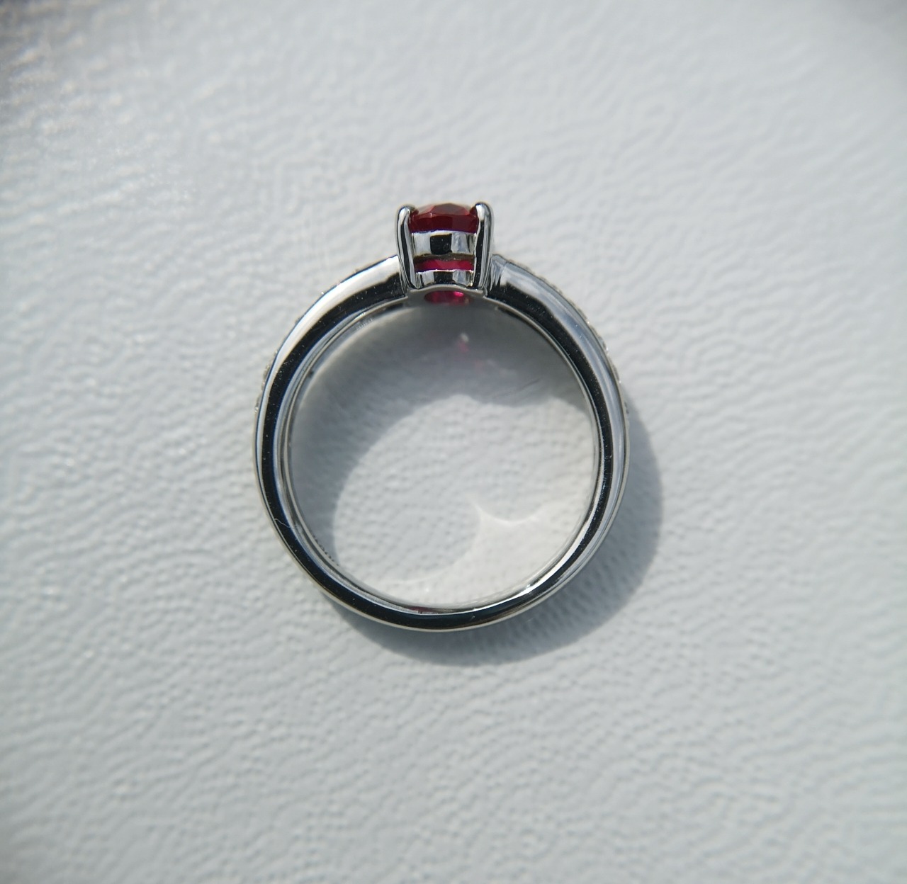 ルビーに良く見られる片寄った色たまりもなく、お石全体にピジョンブラッドカラーが広がっております。