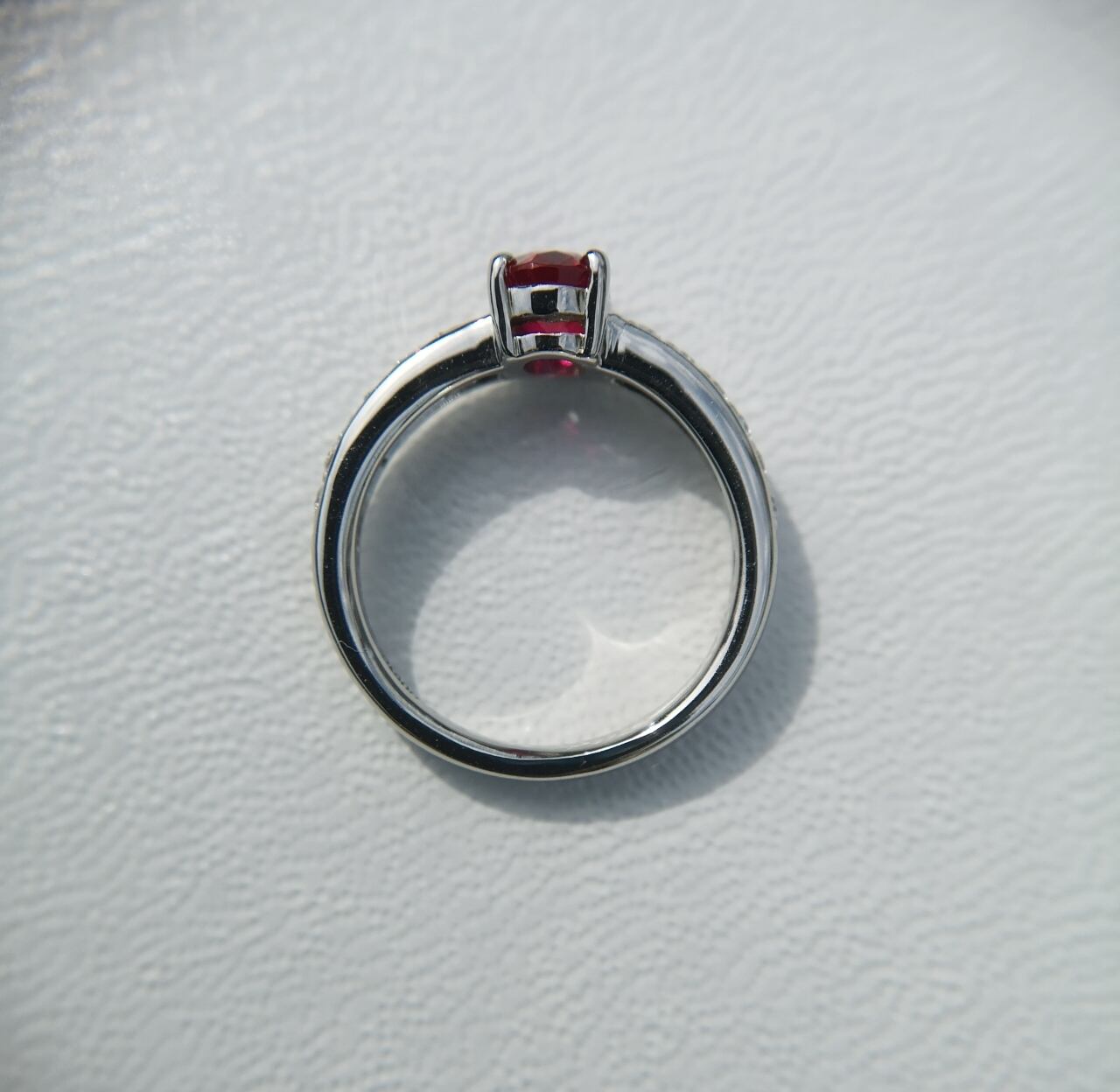 デザインはアーム部分にダイヤをエタニティーの様にシンプルにセッティングしておりますので美しいルビーがより際立ちます!!