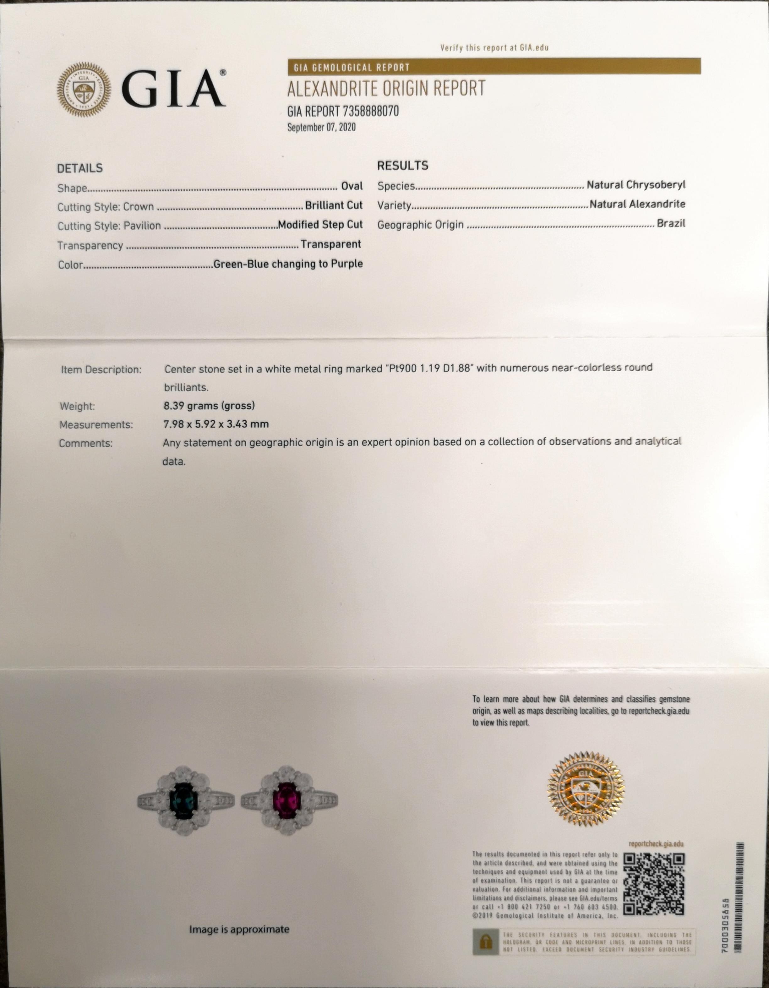 Pt900ブラジル産 アレキサンドライトリング1.19ct
