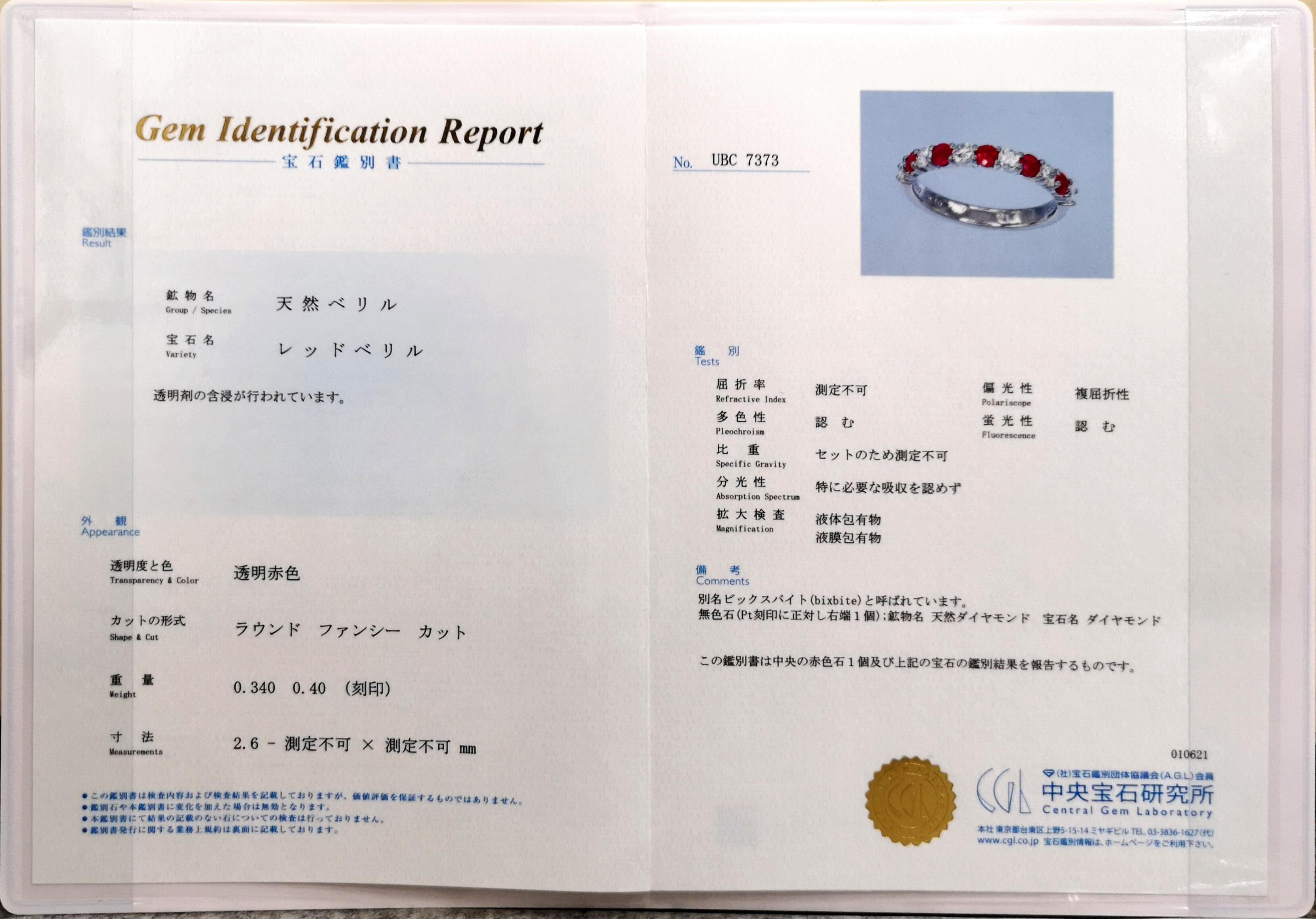 貴重な貴重なメレサイズのレッドベリルのロットが入荷致しましたので、クオリティーの高い上質なダイヤモンドと共に贅沢なハーフエタニティーにお仕立てしました。